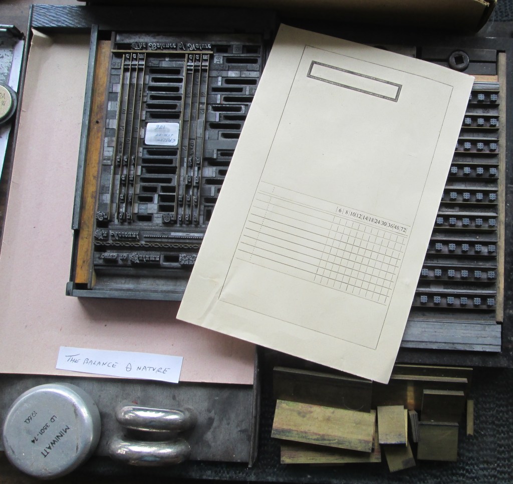 Stichill Marigold Press has been producing small-scale artworks for three decades. Using two vintage Adana eight-by-five hand presses and two ten-by-eight Ayers Jardine (Adana) flatbed presses, together with traditional metal and wooden type, printing blocks and unique hand-cut lino and wood blocks, the press was founded with the aim of maintaining and developing the creative aspects of printing by hand. As always in the trade, when practical problems arise the press responds by making a new tool or improvised device to obtain the desired result.